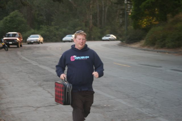• Accelerate car to between 30 and 40 mph, leaving centrifugal force to remove the suitcase from the car’s roof.