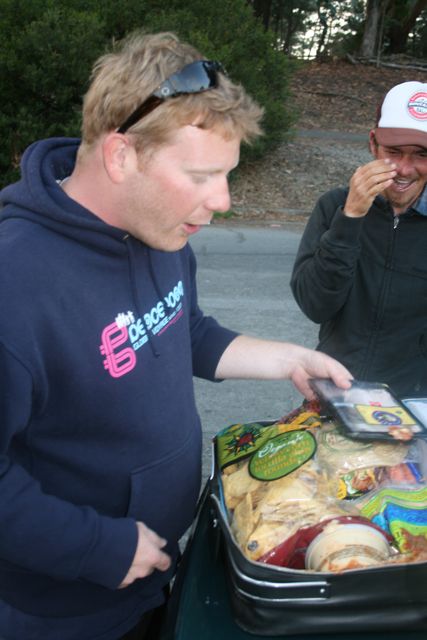 Recently, during Ethan’s visit from New York City, we were playing frisbee golf with our friends Kevin Barischoolteacher and Vince. As we were leaving Golden Gate Park, Kevin was nice enough to share a secret recipe with us. BariSuitcase Dip is a special two-layer concoction that’s sure to be the hit of any dinner party or summer BBQ. Here’s how you make it: